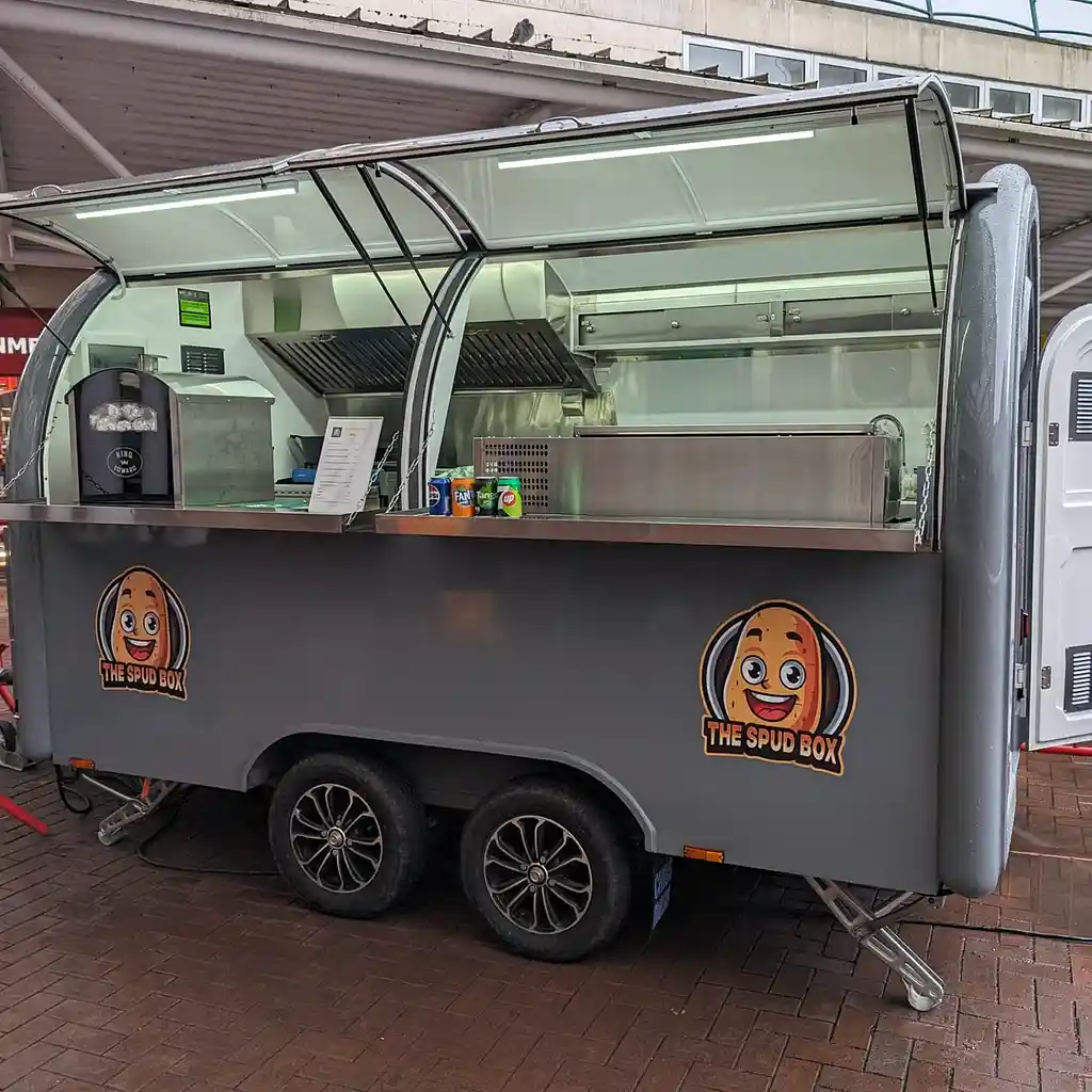 Welcome to Spudbox, your premier local jacket potato catering service headquartered in Cwmbran Town Centre. Additionally serving events throughout the region, our speciality lies in our signature pop-up potato unit, ensuring top-notch quality and unbeatable taste. Book Spudbox today for your upcoming event! Our coverage areas include but are not limited to Abergavenny, Pontypool, Cwmbran, Newport, and Cardiff.